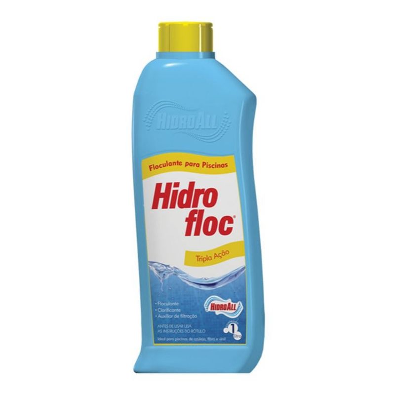 HIDROFLOC possui TRIPLA AÇÃO: flocula, clarifica e funciona como auxiliar de filtração. HIDROFLOC aglomera partículas microscópicas dissolvidas na água, fazendo com que as mesmas se depositem no fundo da piscina para serem retiradas pela aspiração.