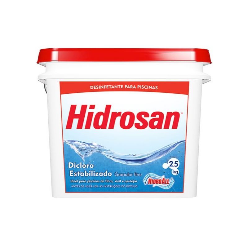 Hidrosan Plus é o Dicloro Orgânico exclusivo da HidroAll, fabricado de acordo com as características físico-químicas das águas brasileiras. A fórmula única (Patente Requerida) de Hidrosan Plus o diferencia dos demais dicloros fabricados para aplicações industriais e que são vendidos para tratamento de piscinas.Hidrosan Plus não reduz a Alcalinidade Total da água nem o pH, por isso, piscinas tratadas com Hidrosan Plus permanecem com água balanceada, enquanto as tratadas com outros produtos se desequilibram após 2 ou 3 meses de aplicação.