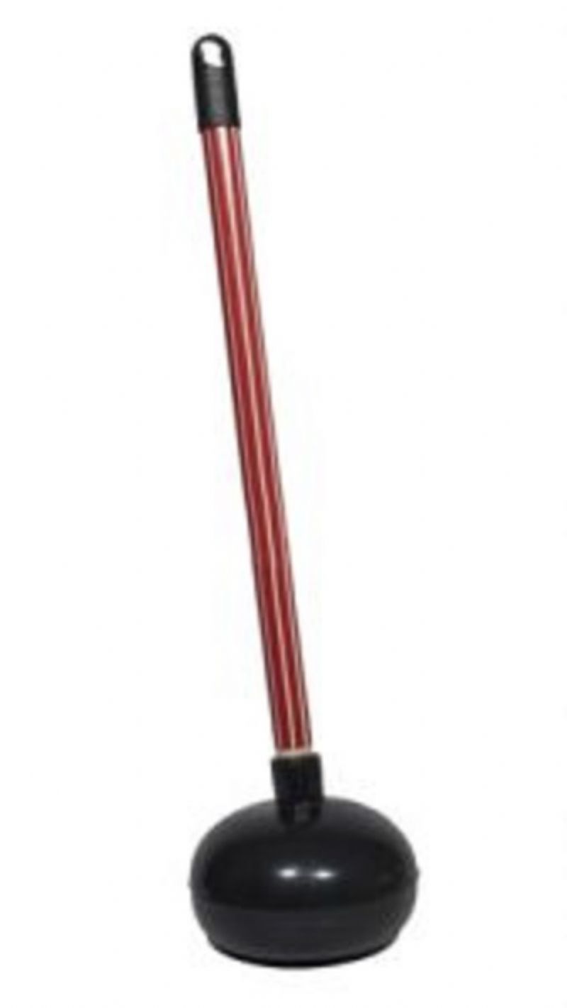 Confeccionado em borracha e com cabo longo possui um alto poder de sucção facilitando a desobstrução dos vasos sanitários