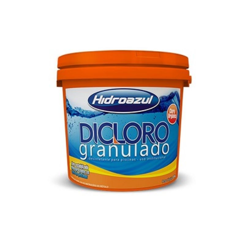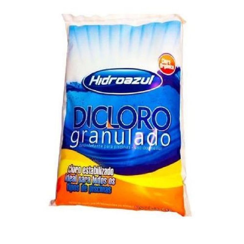 O Dicloro Granulado é um composto químico orgânico clorado, excelente bactericida. Fonte de cloro disponível para desinfecção e sanitização de piscinas, possui agente estabilizador de cloro, que mantêm o efeito sanitizante por mais tempo na piscina e possui baixo índice de insolúveis. Pode ser utilizado para a destinação domiciliar ou institucional. É próprio para a eliminação dos microrganismos da água da piscina, oxidação de matéria orgânica, inibição de odores desagradáveis e para a prevenção da transmissão das mais diversas doenças infecciosas. Dicloroisocianurato de Sódio. Cloro estabilizado granulado com dissolução rápida. Não altera o pH da água. Não deposita resíduos insolúveis na água.