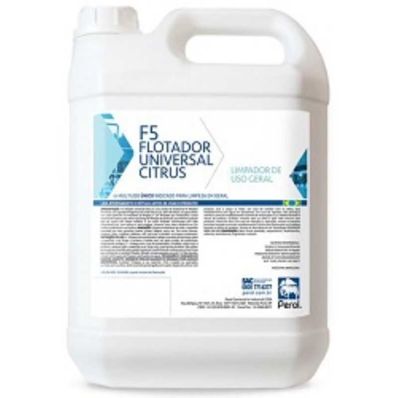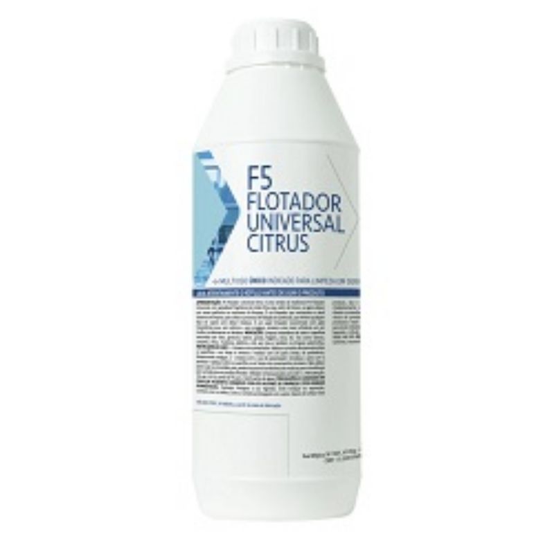 Flotador universal com fragrância de limão citrus.Versão do tradicional F5 flotador universal, com a agradável fragrância limão citrus que, além de limpar, deixa um suave perfume no ambiente.pH levemente alcalino.Diluição: limpeza pesada: puro até 1:1 / manutenção: 1:2 até 1:10.Onde utilizar?Superfícies laváveis, cerâmicas, esmaltados, vitrificados, sintéticos, vinil, estofados, carpetes, couro, tapetes, alumínios, inox, plásticos, PVC, fórmicas etc.