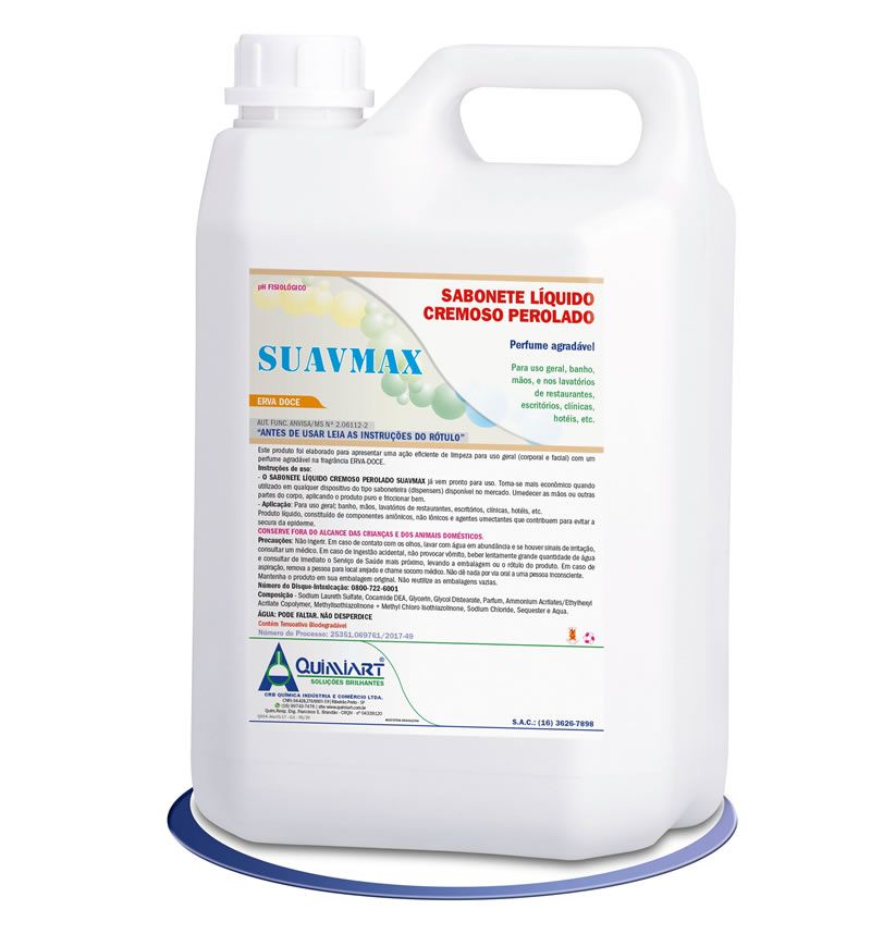 SUAVMAX é um produto especialmente desenvolvido para lavagem das mãos. Seu perfume, cor e cremosidade foram cuidadosamente estudados para dar ao usuário uma agradável sensação de limpeza, aroma, e hidratação cutânea.