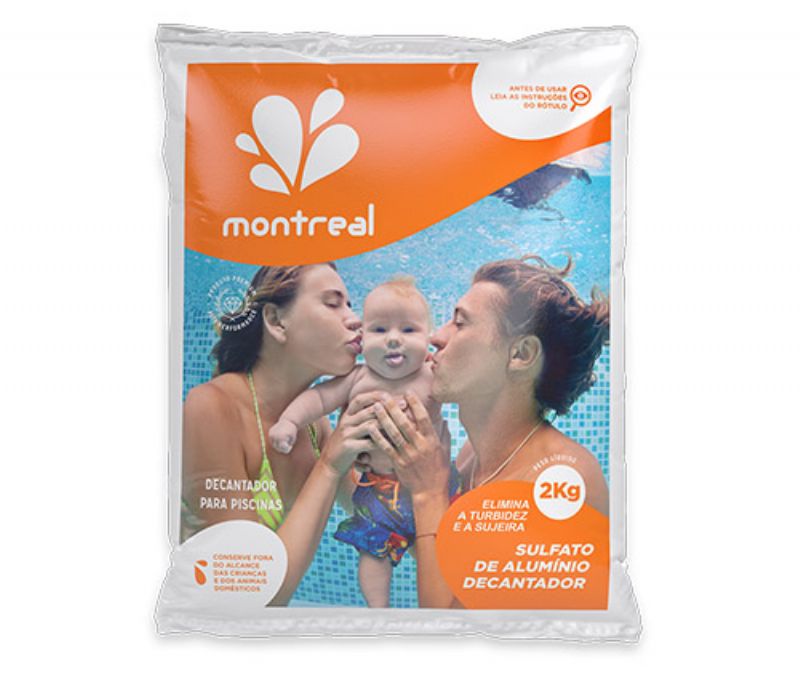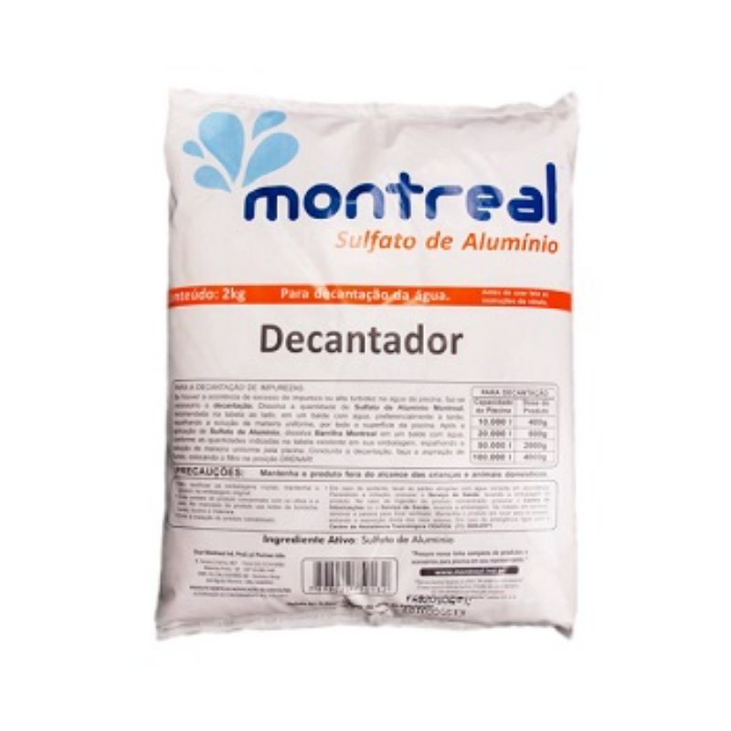 Sempre que houver a ocorrência de excesso de impurezas ou a alta turbidez na água da piscina, faz-se necessária a decantação utilizando o Sulfato de Alumínio Montreal em conjunto com a barrilha. Depositada no fundo da piscina, a impureza é facilmente retirada pela aspiração. Sempre aspirar drenando quando usar o Sulfato de Alumínio Montreal.